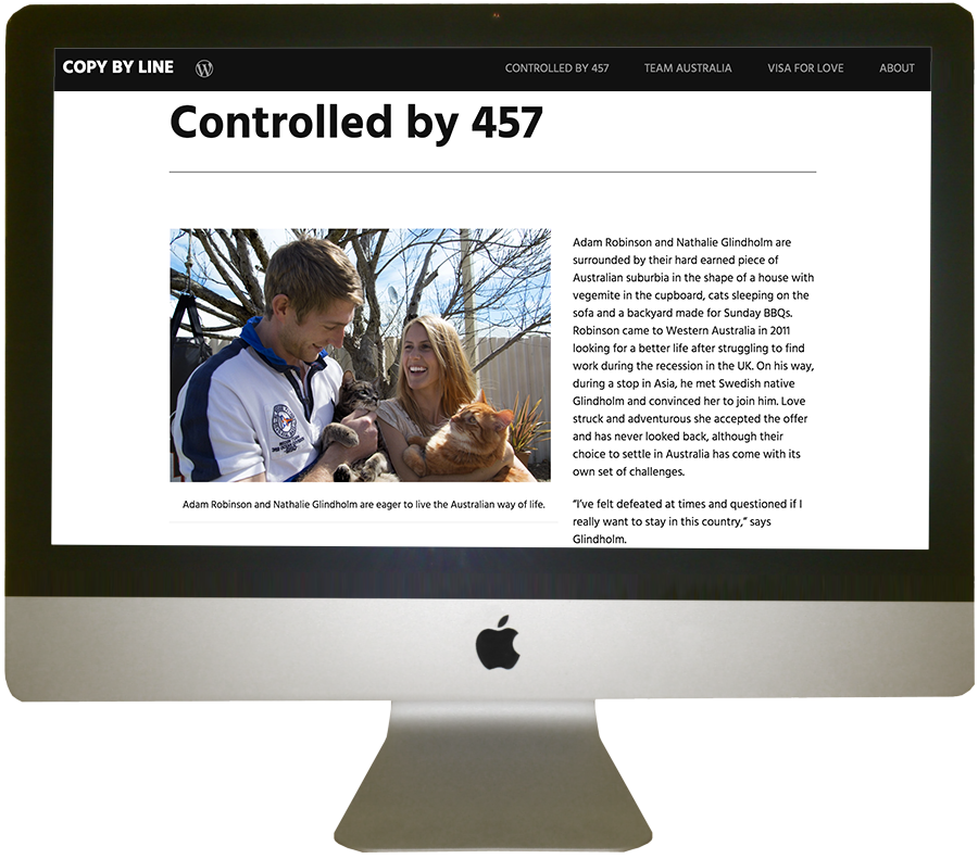 A multimedia news story exploring various aspects of migrants leaving their home overseas, why they left, and how they have made Australia their new home. This story also seeks to explain some of the difficulty that migrants go through when applying for visas. The story was delivered in a WordPress website format to capture the look of a multimedia news story, and included a feature article, photo gallery and a video.
